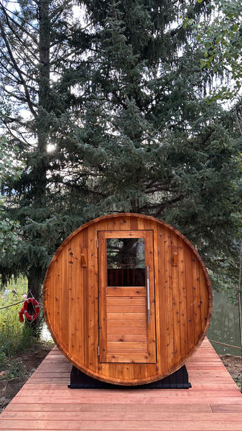 Unwind in the luxurious 4-person hot tub nestled within the aspen trees, with views of the water and mountains. Step into the sauna overlooking the trees and water. Lounge in Serenity Ponds robes and slippers. Stargaze or relax from our European dome.